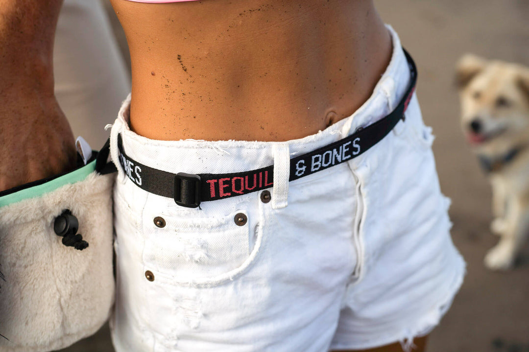 The Tequila&Bones dog treat bag waist belt. Size adjustable and unisex.