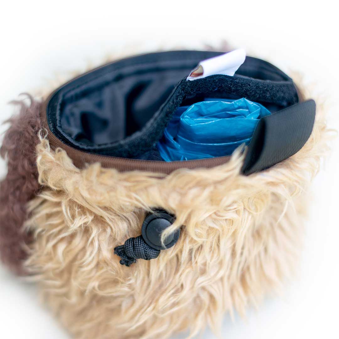 Every T&B treat bag comes with a size-adjustable belt and a clip with which you can attach it to your belt or almost anything. Wear it on your hip, on your belt, on your back or let your dog carry it (though we do not really recommend the last one).